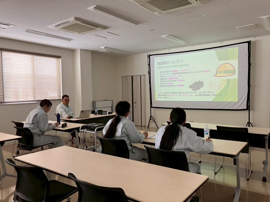 2日目は午前に安全教育、午後は社労士の今中先生による挨拶・報連相研修を行いました。